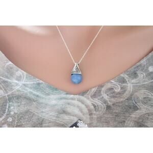 This is Sterling Silver Simulated Blue Pearl Bead Tear Dropped Shaped Necklace. Both the charm and the necklace are Sterling Silver. This charm comes on an 18 inch chain.