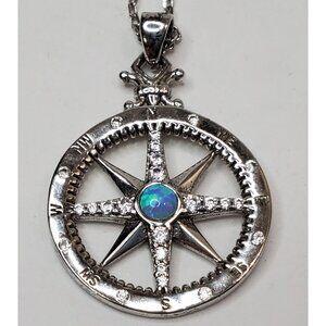 Sterling Silver Simulated Opal Cubic Zirconia CZ Compass Necklace 18 in.