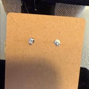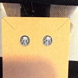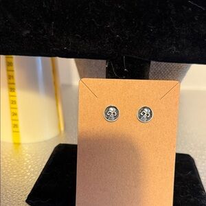 Stylish silver skull stud earrings. Perfect for adding an edgy touch to any outfit.