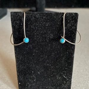 Sterling Silver Sleeping Beauty Turquoise Long Wire Earrings Vintage 1960's