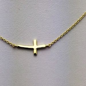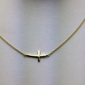 Sterling Silver Small Curve Sideway Cross Necklace