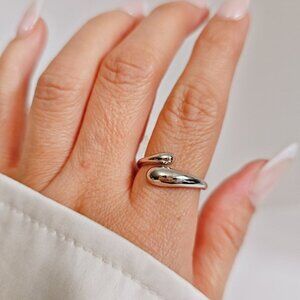 Sterling Silver Small Drop Paddle Ring, Abstract Ring,Wraparound Ring,Adjustable