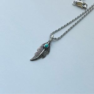 Sterling Silver Small Turquoise Feather Pendant with Italian Rope Chain Necklace, Silver Chain, Boho Necklace, Religious Necklace, Synthetic Turquoise Necklace, 925 Stamped