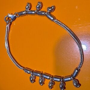 Sterling Silver Snake Chain Bracelet Dangling Bead Charm Vintage 925