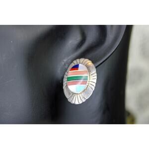 PP Signed Sterling Silver Southwest Inlay Post Earrings