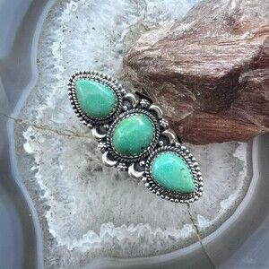 Sterling Silver Southwestern Style 3 Green Turquoise Adjustable Ring For Women