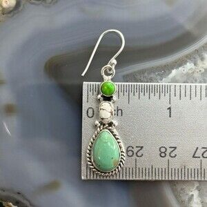 Sterling Silver Southwestern Style, Multistone Teardrop Turquoise, Oval Wild Horse, Round Green Turquoise, Decorated Dangle Earrings For Women.