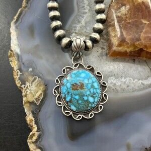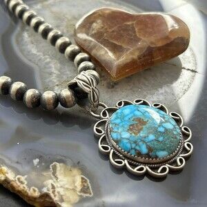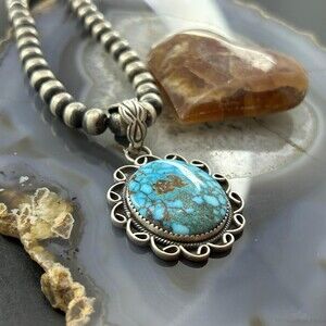Beautiful Sterling Silver Southwestern Style Round High Grade Kingman Turquoise Decorated Pendant For Women.