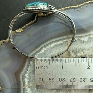Sterling Silver Southwestern Style Teardrop Azurite Flexible and Adjustable, Decorated Split Shank Bracelet For Women.
