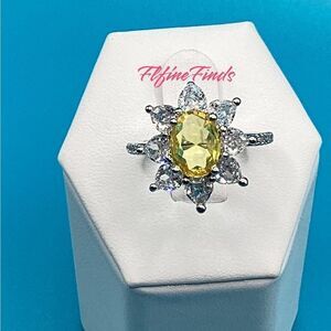 🌻 Sterling Silver Sparkling Canary Yellow Cz Diamond Sunflower Ring