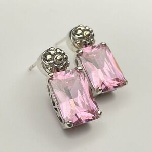 Sterling Silver Sparkling Pink Sapphire Color Post Earrings Birthstone Libra