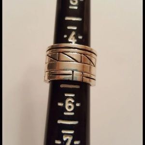 Stamped 925 Mexico set of 4 stackable band rings. Size in photo #3. Keep in mind that this ring may fit tighter on finger when all worn together. Ring is pre-loved and worn. Does have surface wear. Any questions please ask! ☺