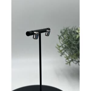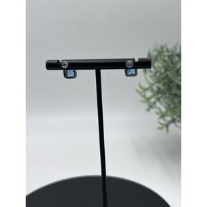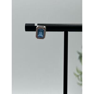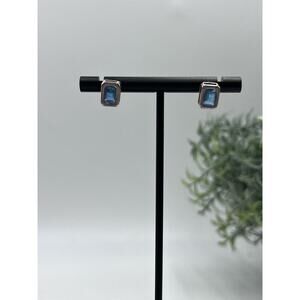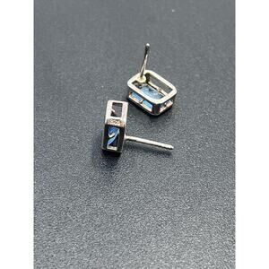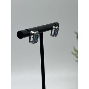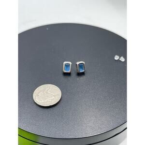Sterling Silver Stamped 925 Rectangular Blue Stone Stud Earrings