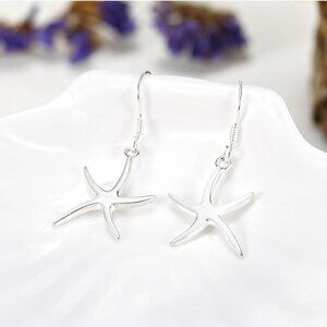 Sterling Silver Starfish Dangle Earrings Nautical Beach Jewelry Gift