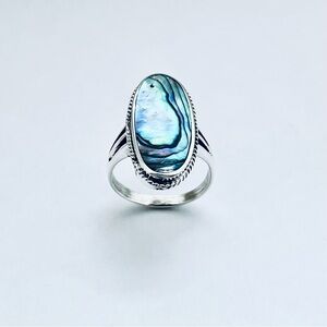 Sterling Silver Statement Abalone Ring, Silver Ring, Seashell Stone, Ocean Shell