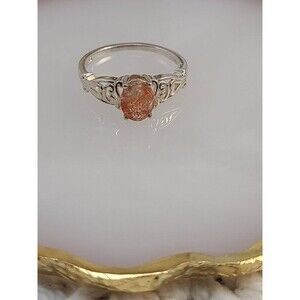 Add a touch of warmth and elegance with this Sterling Silver ring featuring a rich strawberry quartz gemstone. Set in a vintage-style filigree band, the oval-cut stone glows with soft orange-pink hues. Crafted in 925 silver and sized at 8, this ring blends artisan charm with timeless appeal.