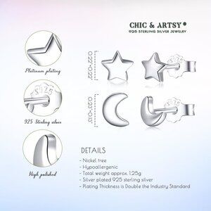 Features: A pretty mismatched pair featuring a star and moon design, lightweight and easy to wear. Hypoallergenic platinum plated sterling silver, nickel-free and lead-free, safe for sensitive skin.