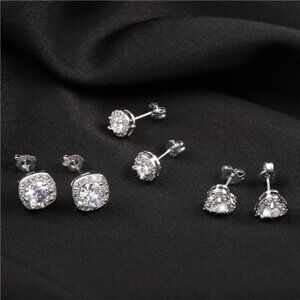 Sterling Silver Stud Earrings for Women Girls Cubic Zirconia