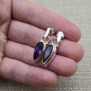 Sterling Silver Stunning Amethyst Gem Dangle Earrings A5318