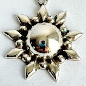 Sterling Silver Sun Pendant Necklace Vintage Mexico CII 925 Sunburst Statement