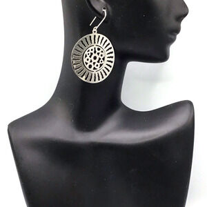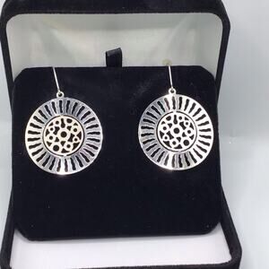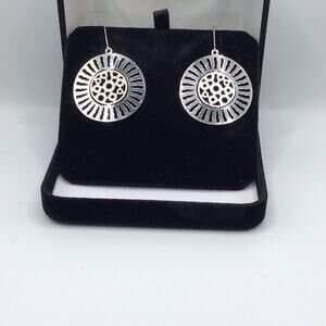 Sterling Silver Sunburst Cutout Dangle Earrings Hook 5.6g Statement Boho