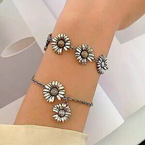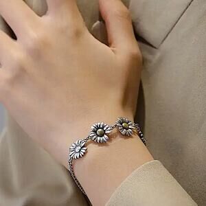 Sterling Silver Sunflower Chain Link Minimalist Bracelet