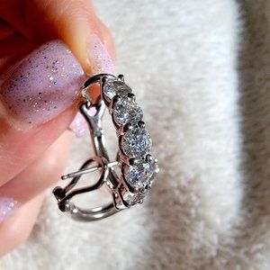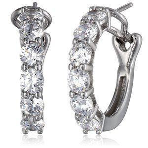 Platinum-Plated Sterling Sterling Silver Swarovski Zirconia Round Hoop Earrings.