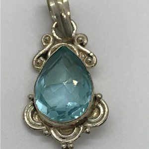 This sterling silver pendant features a rather large teardrop blue topaz gemstone. This is Silver plated but the stone is what is the big draw to this beautiful pendant. The Bail is big enough to fit almost any chain. This pendant can be worn with either side facing out, the back is just plain but the gemstone is also faceted on the back as well. This is such a beautiful Swiss Blue Topaz pendant.