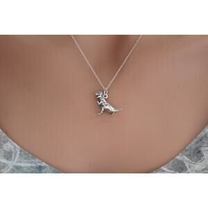 Sterling Silver T-Rex Necklace, Sterling Silver Tyrannosaurs Necklace