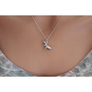 This is Sterling Silver 3D Tyrannosaurus Rex Charm Necklace. The charm comes on an 18 inch chain.
