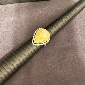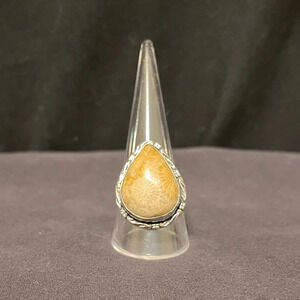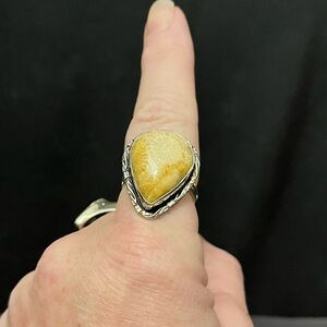 This sterling silver and natural stone ring is perfect for making a statement of your bohemian style. This piece is stamped 925 on the back. I think that this is some type of fossilized stone, but honestly can’t remember the name of the stone. Please review all the photos as they are part of the description.