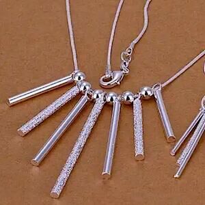 Sterling silver tassel necklace measures 18”. Matching earrings set.