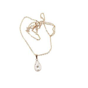 This vintage-inspired necklace features a teardrop pendant with an intricate starburst etching, complemented by a fine gold-tone chain for timeless elegance.