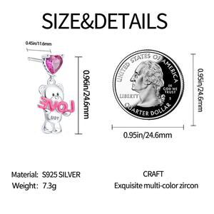 Showcase your love with these adorable teddy bear drop earrings! Crafted from high-quality S925 sterling silver, each earring features a cute teddy bear holding a "LOVE" sign, dangling charmingly from a pink heart-shaped zircon stud. The S925 stamp is elegantly placed on top of the pink heart stud, ensuring authenticity and quality. These earrings are perfect for adding a playful yet heartfelt touch to any outfit, whether you're dressing up for a special occasion or adding a bit of sparkle to your everyday look. Ideal as a gift for your loved ones or to treat yourself to some lovely jewelry.