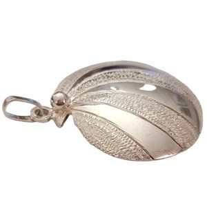 Sterling Silver Textured Round Domed Modernist Orb Pendant E121