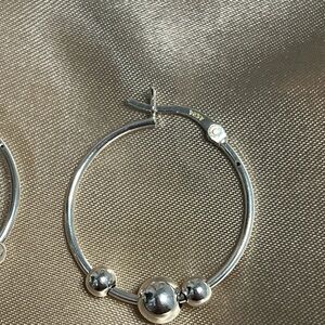 Sterling Silver Three 3 Ball Bead Hoop Earrings Classic Everyday Hoops. Great pre-owned condition.