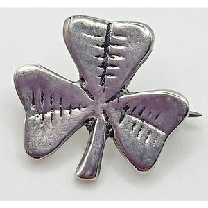 Sterling Silver Three Leaf Clover Brooch Pin 0.75in