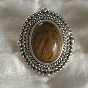 Braided design in sterling silver with large Tiger’s Eye cabochon stone. About 1” long. Pet and smokefree home, fast shipping!