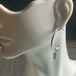 Sterling Silver Tone Hoop With Dangling Charm 2 Sets Earrings