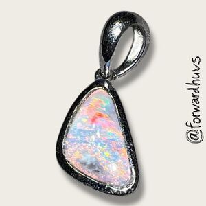 Sterling Silver Triangular Pendant with Mosaic Opal Composite – 925 Marked
