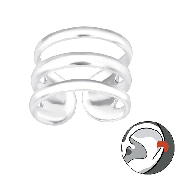 Sterling Silver Triple Band Ear Cuff – Sleek No Piercing Statement