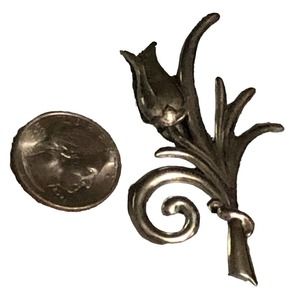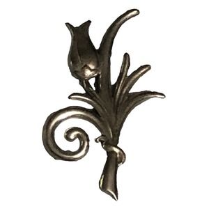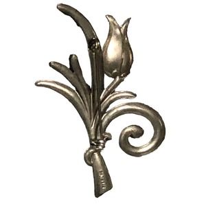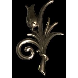 Sterling Silver Tulip Flower Ribbon Brooch Pin Signed Jewelry Art Deco
