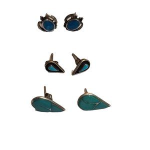 Sterling Silver Turquiose Earrings Lot set of three native american style
