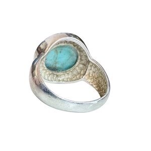 Elegant silver ring with a turquoise stone. Perfect for any occasion. Adds a touch of color and style.