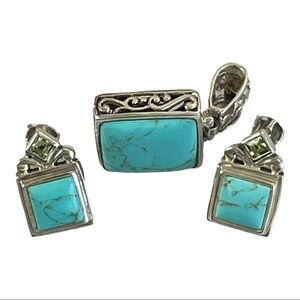 Handmade Sterling Silver turquoise and small peridot in earrings and pendant Set, EUC #22