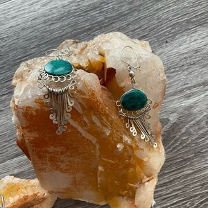 Sterling Silver Turquoise Ring. Intricate Earring Set.