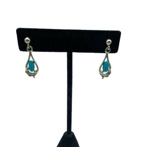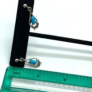Sterling Silver Turquoise William Wheeler signed Tear Drop dangle earrings
