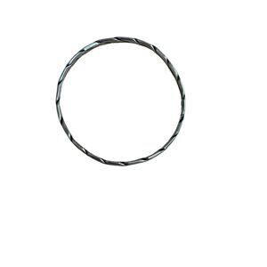 Lovely stacking bangle bracelet made of sterling silver. Not marked, but acid tested. has a flat twist style of design and is a little bigger than most standard bangles at 2 1/2 inches in diameter. Has normal patina for age and is perfect for combining with lots of other bracelets.