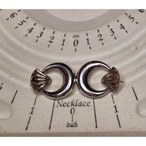 Elegant sterling silver earrings featuring a two-tone crescent and shell design. These post back earrings are perfect for adding a touch of sophistication to any outfit.