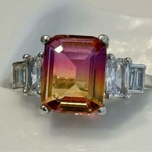 Sterling Silver Unique Padparadscha Sapphire Emerald CZ Ring